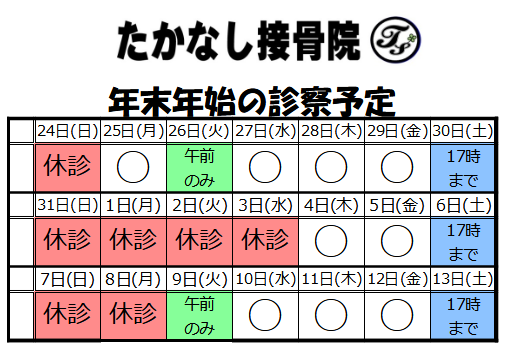年末年始の予定をおしらせいたします。