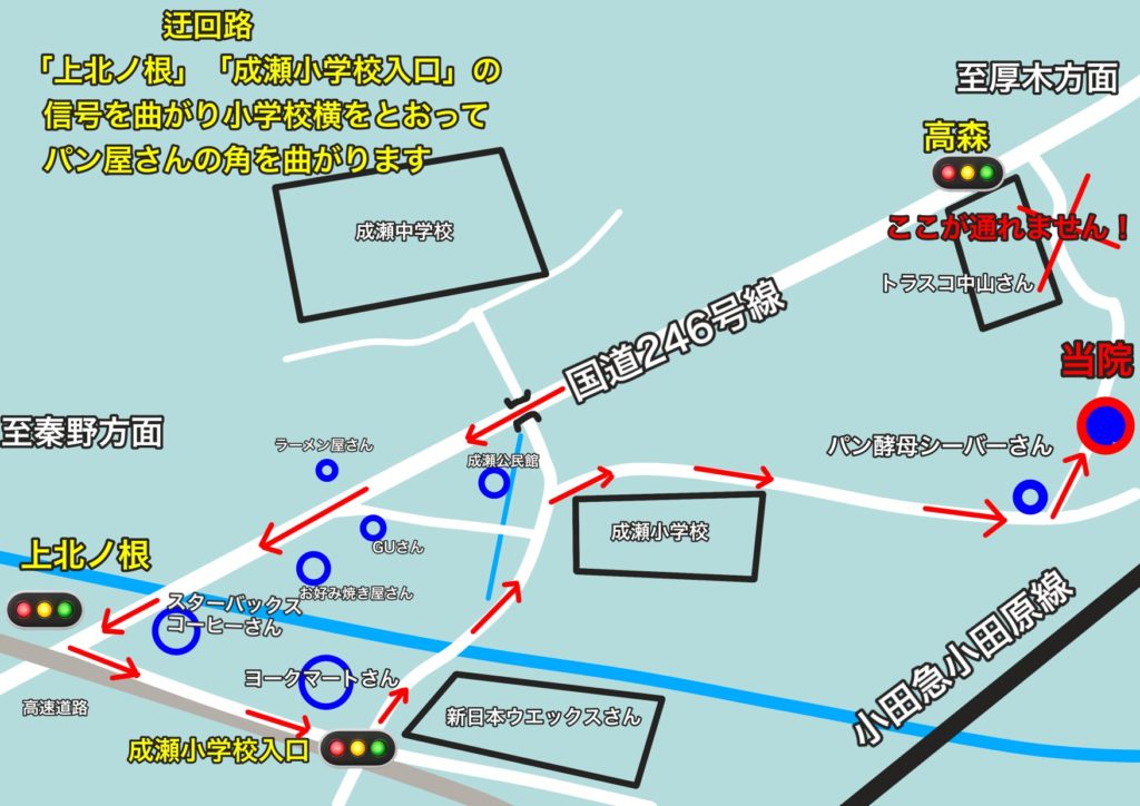 現在国道246号線から当院に降りてくる坂道が工事中のため車両通行止めとなっております。